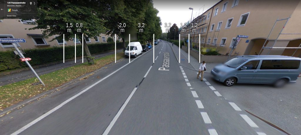 Leider ist eine solche Flächenumverteilung in diesem Abschnitt der Passauerstraße nicht einmal als Radentscheid-Maßnahme konkret geplant. Schülerinnen und Schüler werden also nach Fertigstellung der Grundschule dort auch wieder auf unzureichenden und gefährlichen Radwegen unterwegs sein.