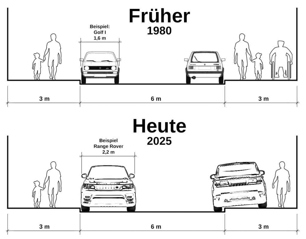 Die Autos werden immer größer, die Fahrbahnen nicht: