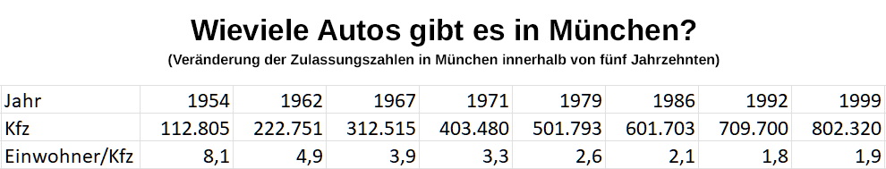 Mittlerweile (2025) gibt es in München über 900.000 zugelassene Kraftfahrzeuge.